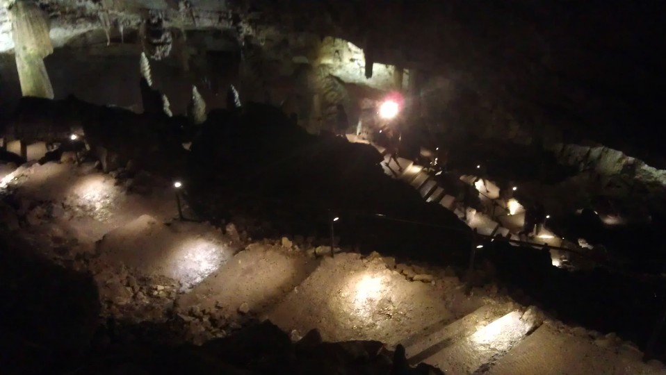 Enttäuscht wurde niemand: Die Führung durch die etwa 7 Grad kühle, geräumige Höhle hielt manche Stalaktiten und Stalagmiten (die Bezeichnungen für die Tropfsteine je nach Wachstumsrichtung lassen sich bekanntlich mit dem französischen Satz „les stalactites tombent – les stalagmites montent“ leicht merken) zur Bewunderung bereit. Auf dem etwa 1.5 km langen Rundgang, für den wir etwa eine Stunde benötigten, bekamen wir einen Eindruck davon, was in den letzten zehntausenden von Jahren im Untergrund ungestört gewachsen ist (nun ja: ganz ungestört war es nicht, hat die Höhle doch eine Öffnung gegen oben, durch welche in früheren Generationen Abfall hineingeworfen wurde, bevor bekannt war, was sich in diesem „Loch“ wirklich befindet). Im Jahre 1886 entdeckt, ist die Höhle bereits seit 1890 für die Öffentlichkeit zugänglich und ist einen Besuch wirklich wert!