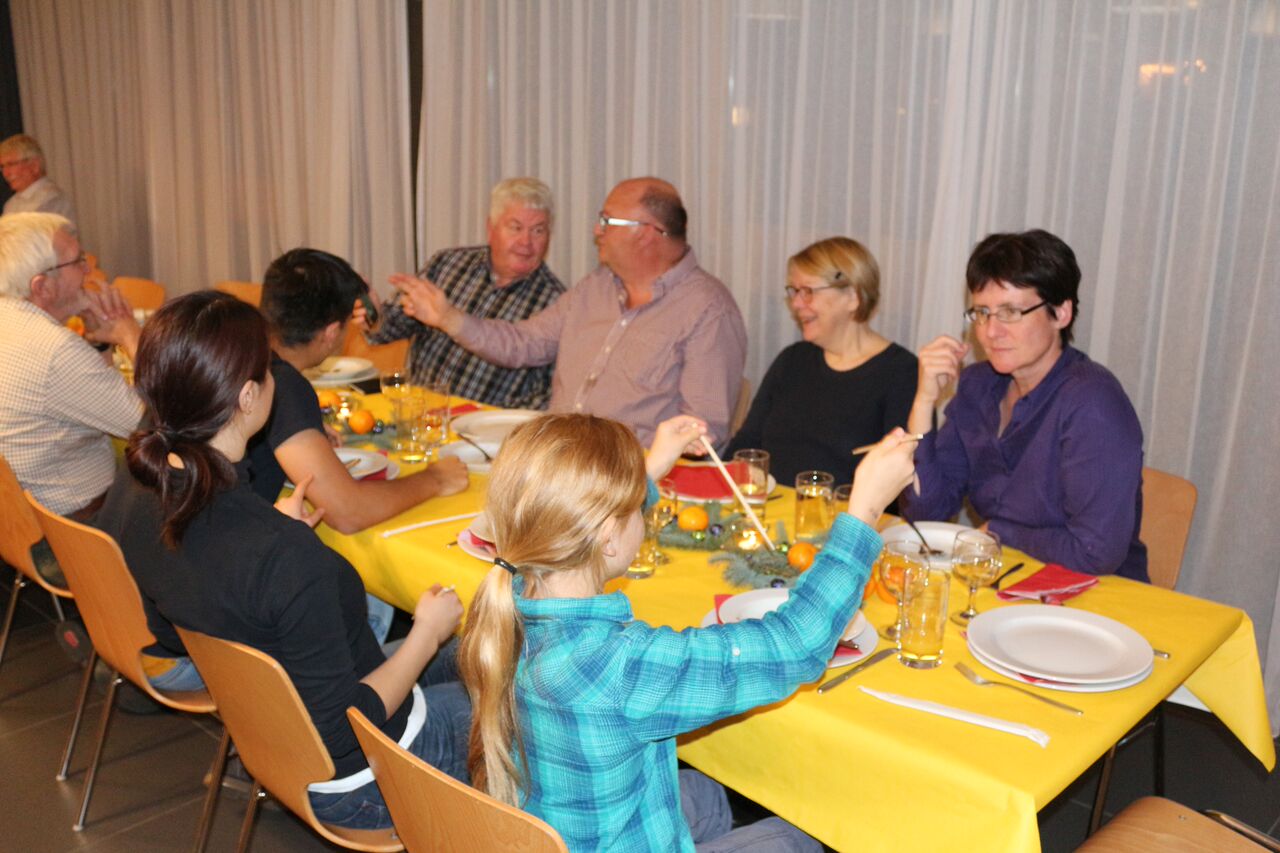 Adrian und Dong Qing hatten auch für ein süsses Dessert in Form von Mandarinen, Schöggeli und Weihnachtgüetzli gesorgt. So sassen wir noch lange zusammen bevor es Zeit wurde, gemeinsam aufzuräumen.