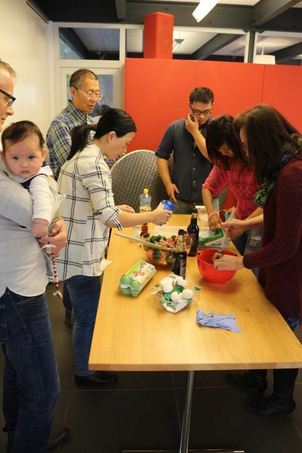 周日的下午,一组初学包饺子的 新手和包饺子能手 都聚集在Reberhaus,在随意的交谈和小食之后, 大家就开始动手包饺子了……